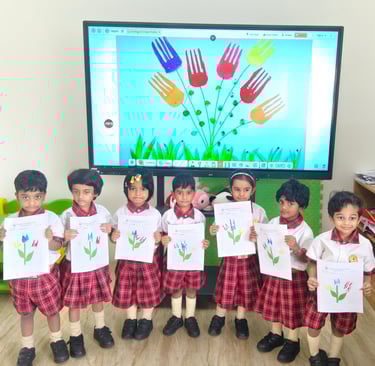 At Sri Jnanakshi Kinderworld, children are encouraged to explore their surroundings, ideas, and imaginations through hands-on activities and joyful learning